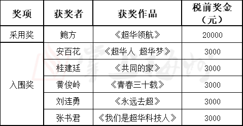 《超華賦》征集獲獎(jiǎng)名單: