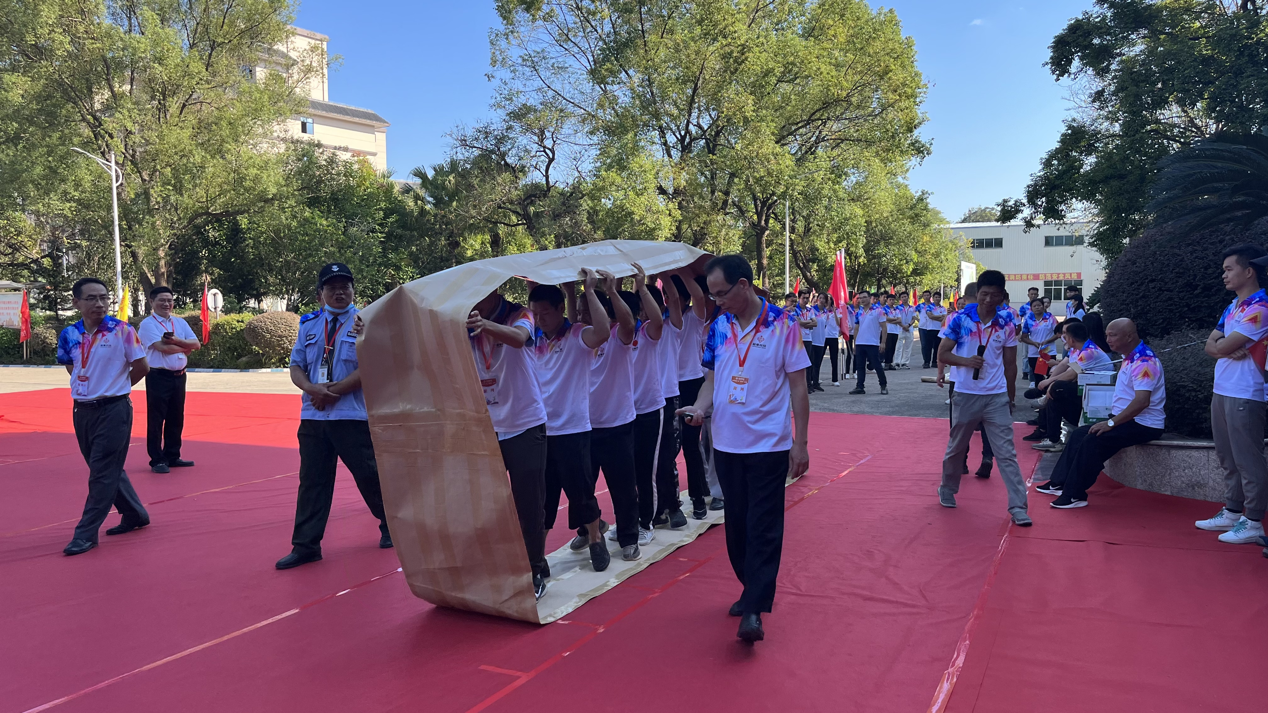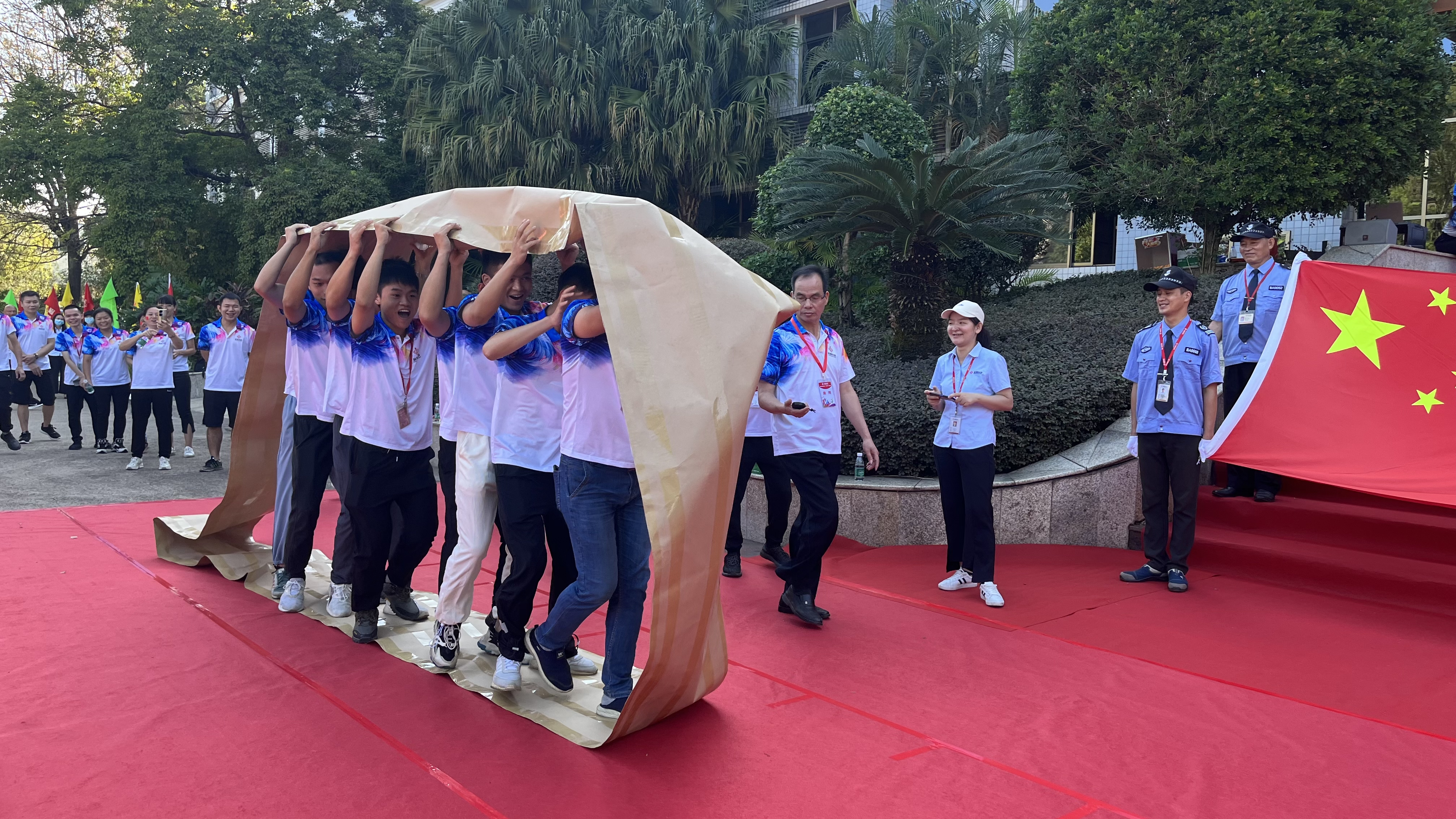 最后由銅箔事業(yè)群總經(jīng)理孟總、人力資源與行政管理中心總監(jiān)謝總上臺發(fā)言,希望全體運動員充分展示運動風度,以飽滿的激情,高昂的斗志,敢于拼搏的信心和團結(jié)向上的精神風貌投入到各項賽事中去,頑強拼搏,賽出風格,賽出水平!預祝全體運動員取得理想成績,并預祝本屆賽事圓滿成功,本次運動會正式開幕!